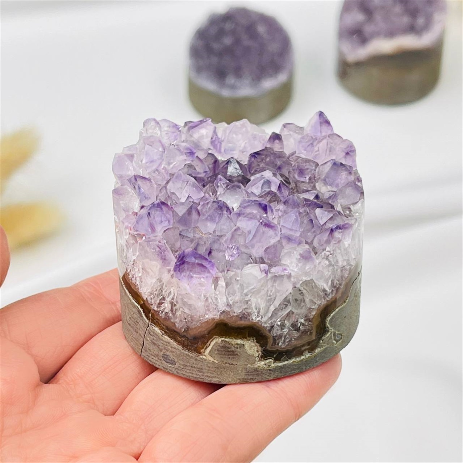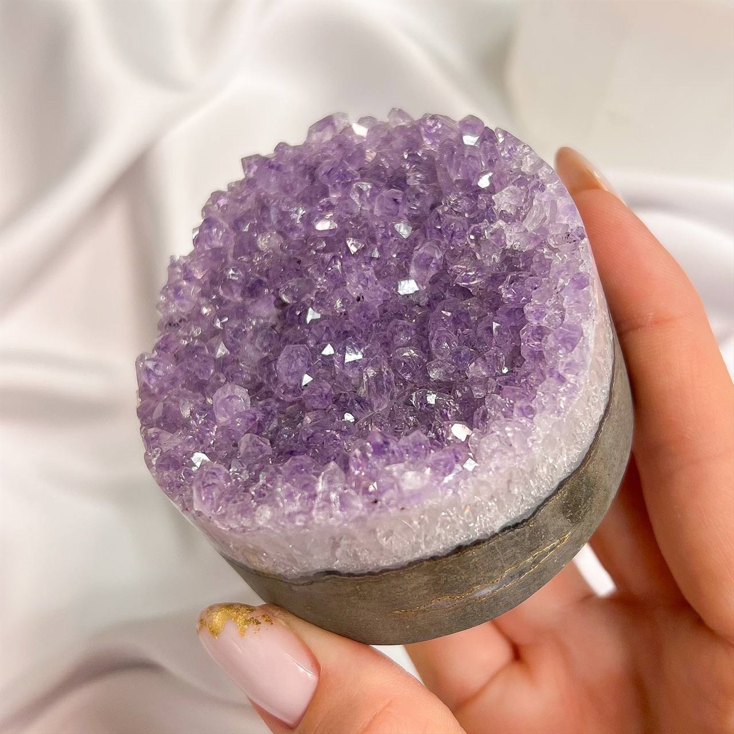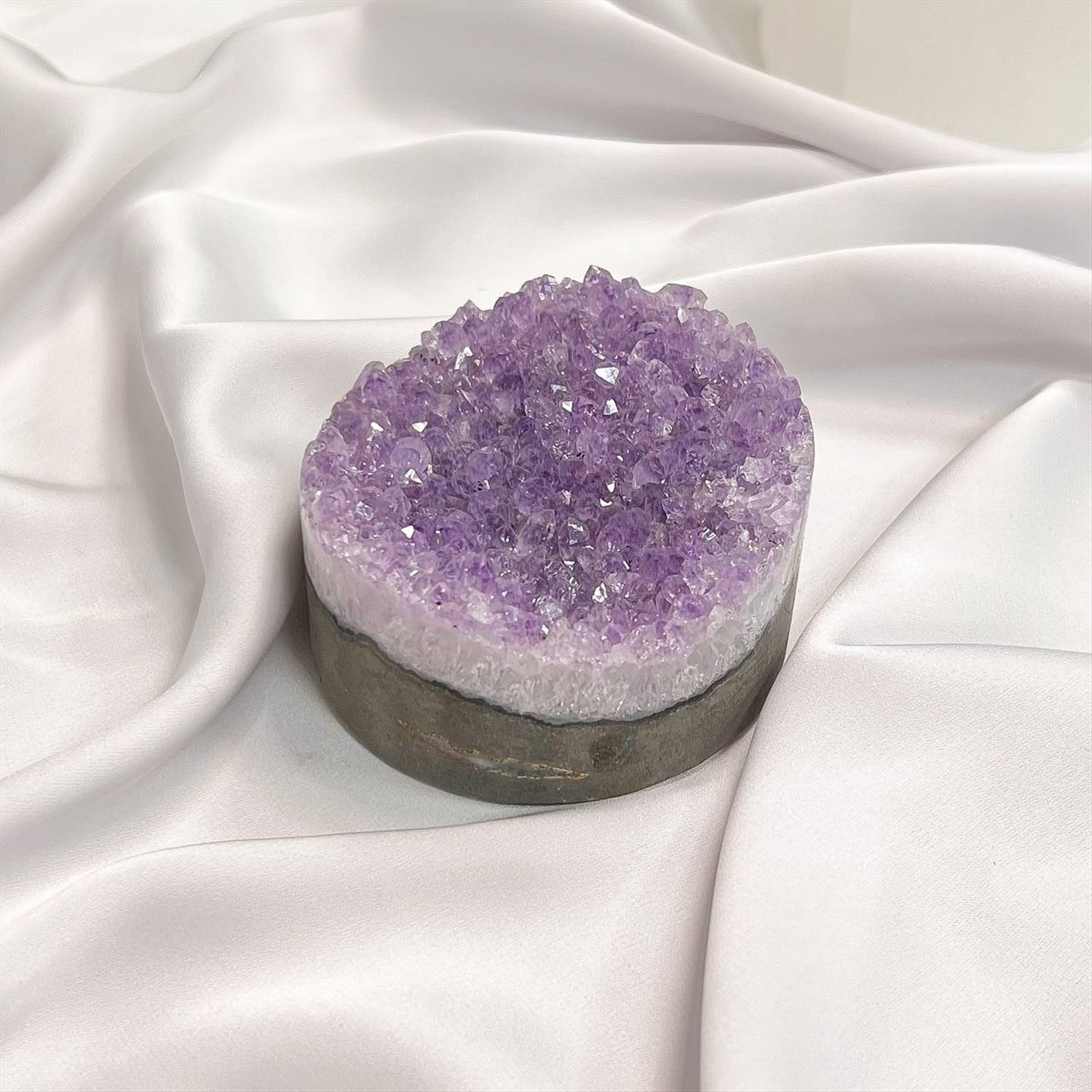 Производитель: Радуга Самоцветов; Цвет камня: Фиолетовый; Месторождение: Бразилия; Камень: Аметист; Диаметр: 50 мм; Поверхность: Необработанный; Размер: 4х7 см