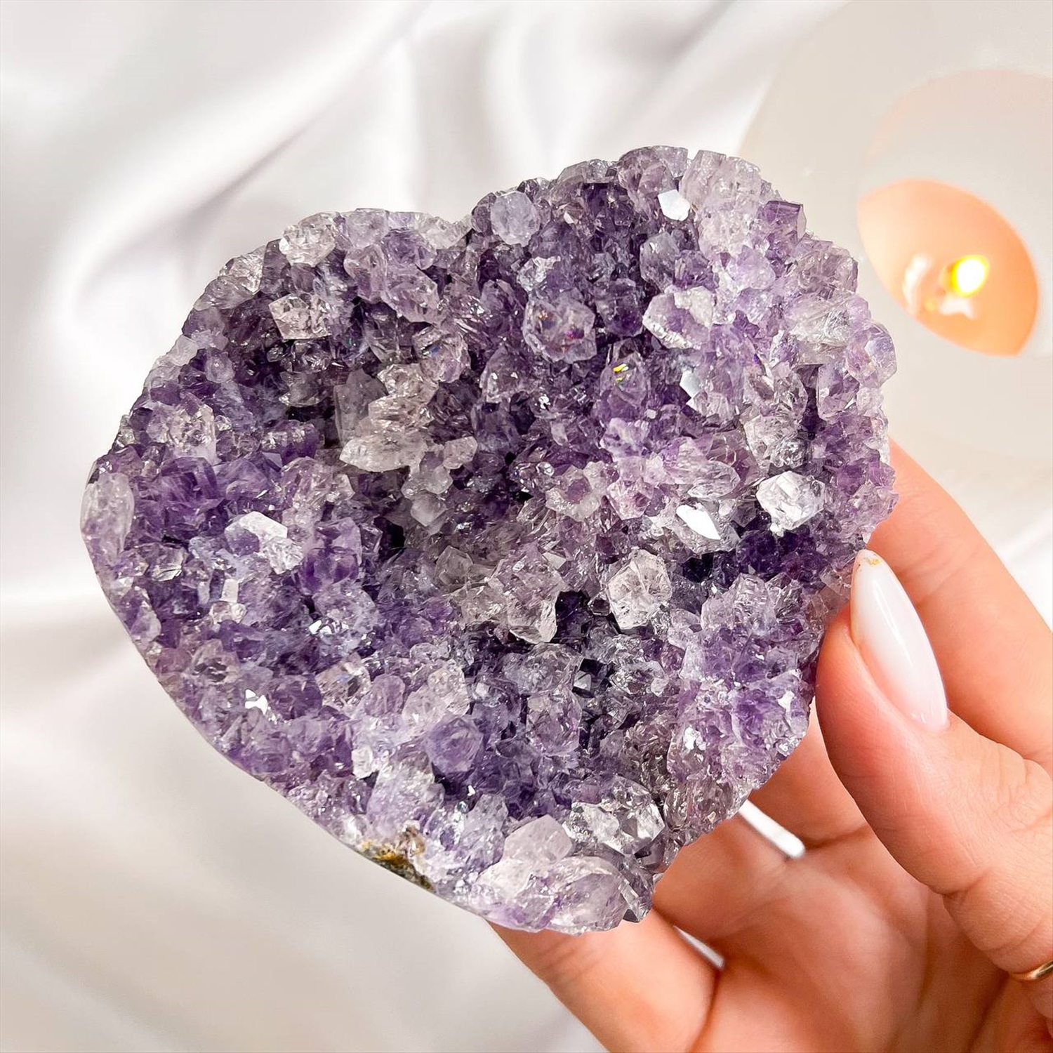 Производитель: Радуга Самоцветов; Цвет камня: Фиолетовый; Месторождение: Бразилия; Камень: Аметист; Поверхность: Необработанный; Размер: 8х9 см