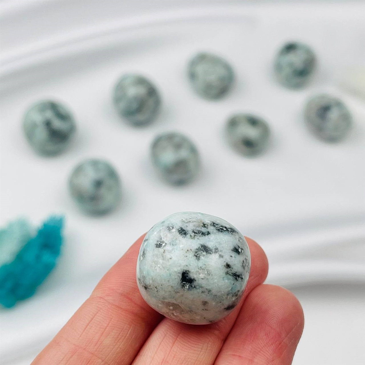 Производитель: Радуга Самоцветов; Цвет камня: Голубой; Месторождение: Африка; Камень: Яшма; Поверхность: Гладкий; Размер: 2-2,5 см