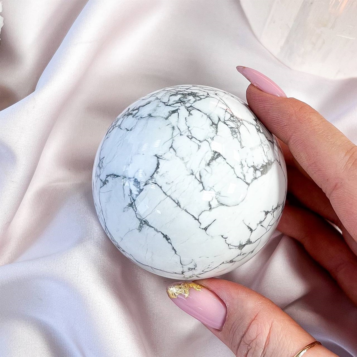Производитель: Радуга Самоцветов; Цвет камня: Белый; Камень: Говлит; Диаметр: 65 мм; Поверхность: Гладкий