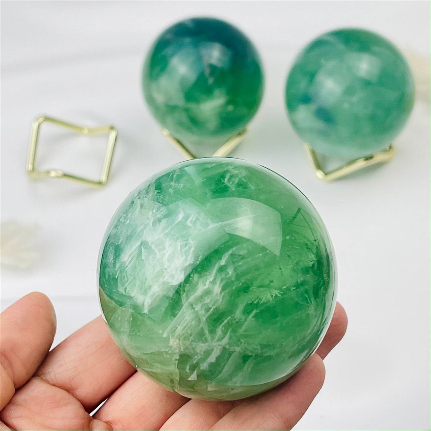 Производитель: Радуга Самоцветов; Цвет камня: Зелёный; Месторождение: Китай; Камень: Флюорит; Диаметр: 60 мм; Поверхность: Гладкий