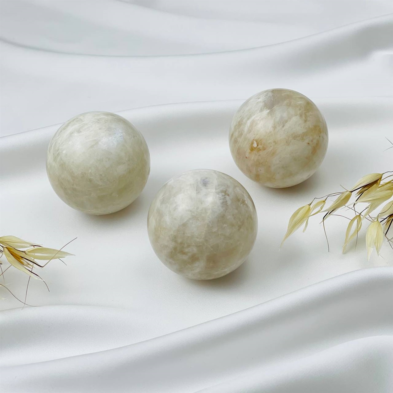 Производитель: Радуга Самоцветов; Цвет камня: Белый; Месторождение: Индия; Камень: Лунный камень; Диаметр: 48-50 мм; Поверхность: Гладкий