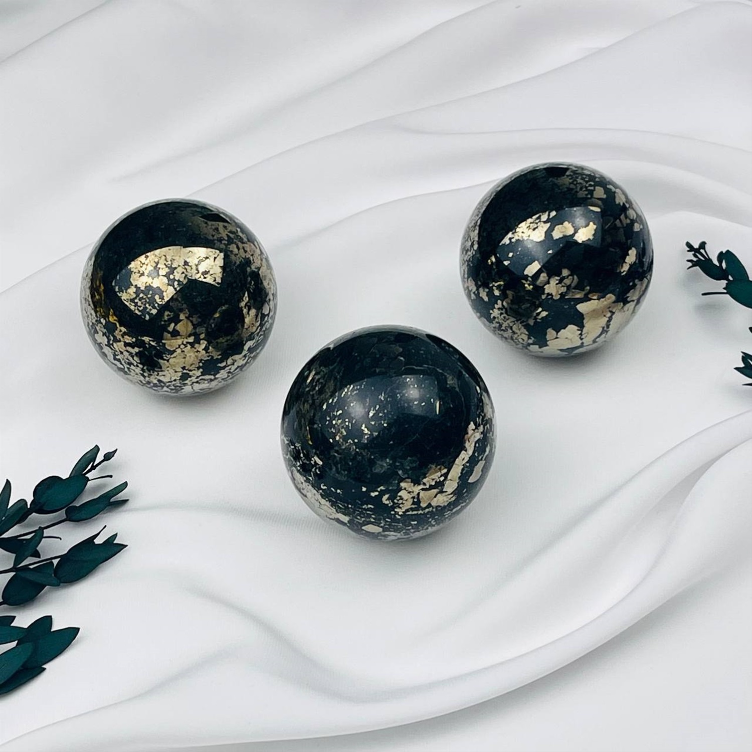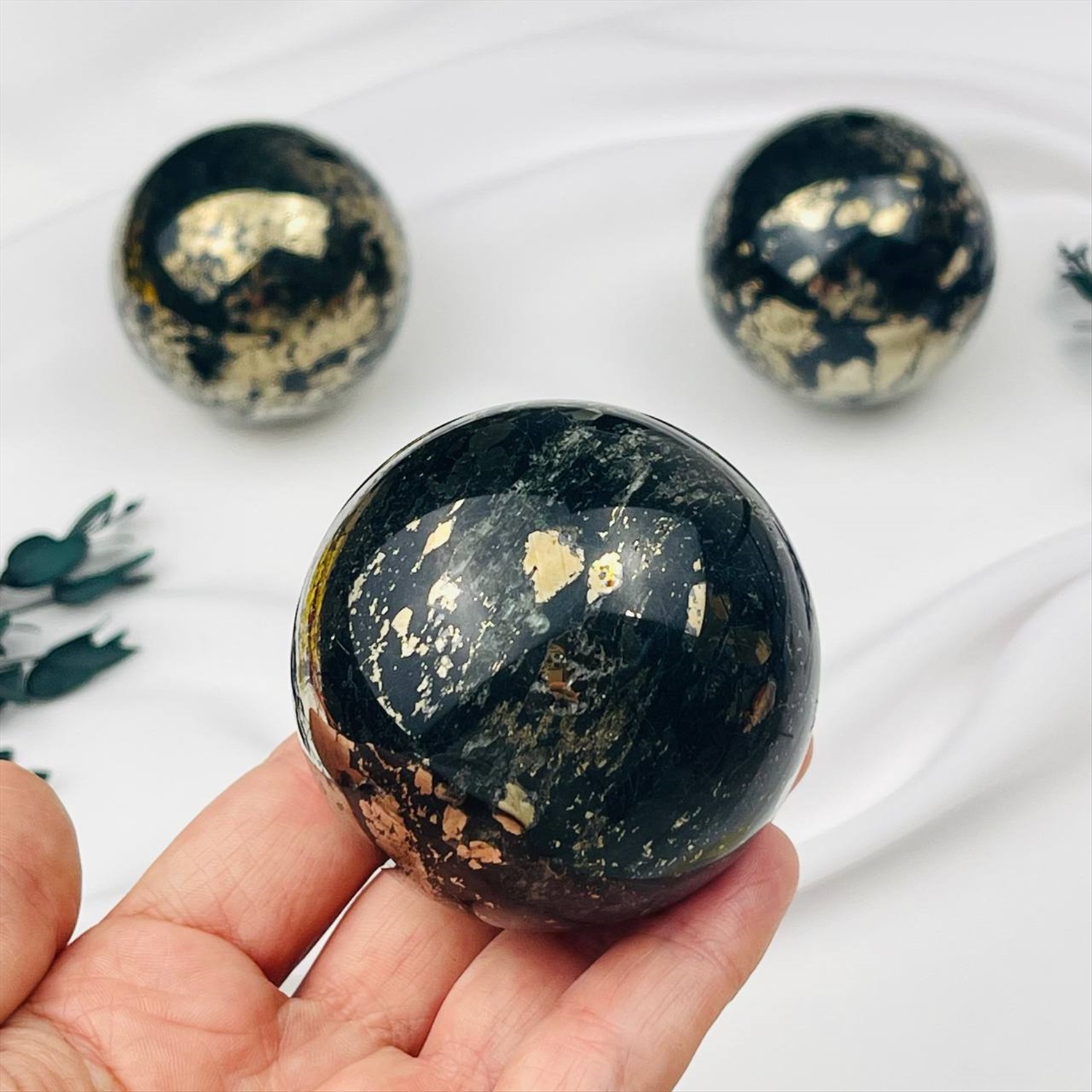 Производитель: Радуга Самоцветов; Цвет камня: Бронзовый; Месторождение: Китай; Камень: Пирит; Диаметр: 55-57 мм; Поверхность: Гладкий