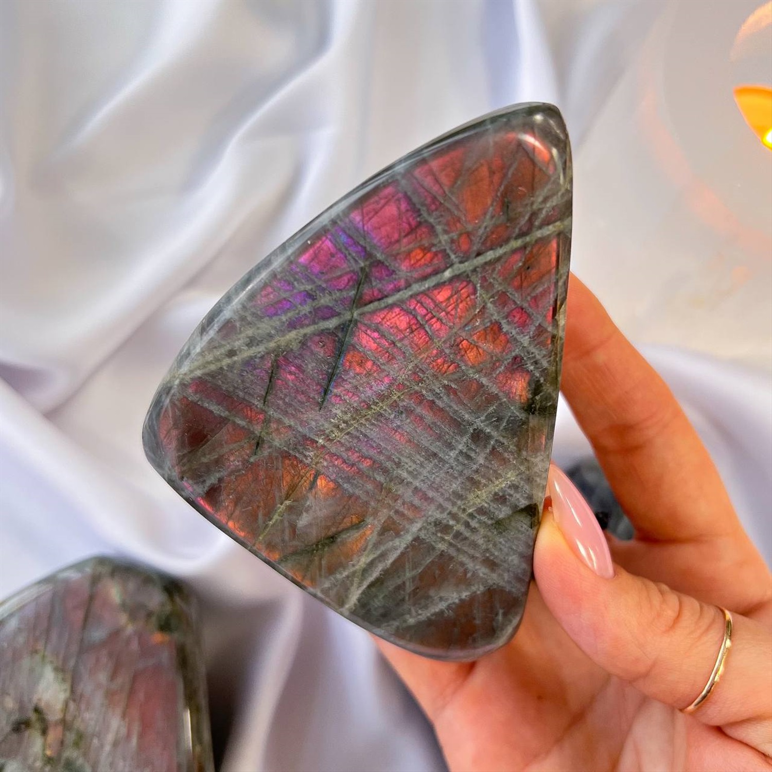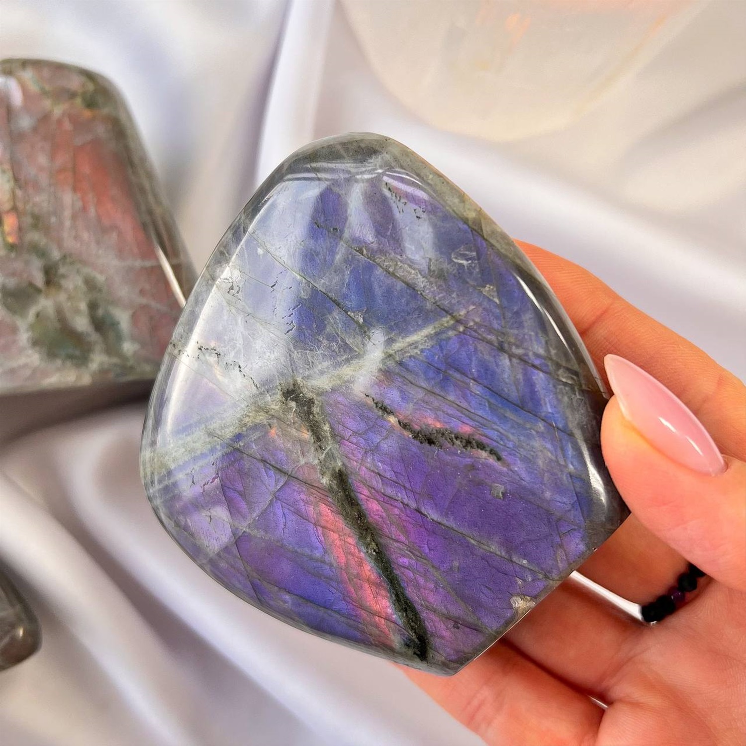 Производитель: Радуга Самоцветов; Цвет камня: Миксовый; Месторождение: Мадагаскар; Камень: Лабрадор; Поверхность: Гладкий; Размер: 7х8 см