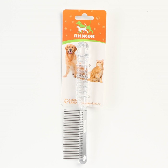 Производитель: Пижон; Габариты: 20 x 4 x 2; Страна: Китай; В боксе: 240 шт; Состав: Металл, пластик; Материалы: металл, пластик; Фасовка: по 12 шт; Индивидуальная упаковка: Подложка; Габариты товара: 20 см × 3,6 см; Сертификат: Не подлежит сертификации; Частота зубьев: Частый Расческа , подходит для животных с длинной прямой шерстью. Ключевые особенности: Для длинной густой шерсти. Тщательно прочесывает шерсть. Удаляет пыль и грязь. Обладает массажным эффектом. Удобная ручка. Не травмирует кожу животного. Для ежедневного использования. При выборе расчески необходимо учитывать длину и густоту шерсти Вашего питомца. Расческа предназначена для тщательного ухода за шерстью кошек и собак. Она легко удаляет частички пыли и грязи с шерсти животного, не повреждая поверхность кожи и не травмируя структуру шерсти. Эта расческа прослужит Вам долгое время, так как изготовлена из высококачественных материалов.