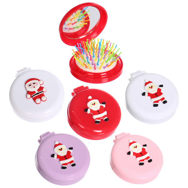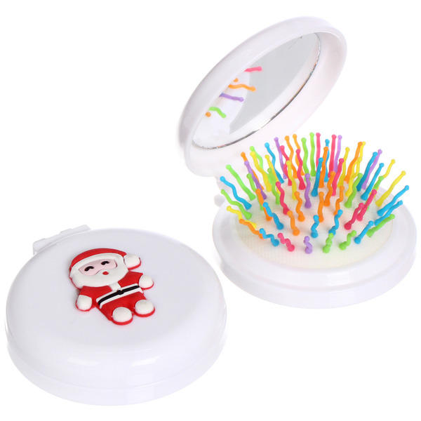 Расчёска массажная складная с зеркалом "Новогодний Дед Мороз", цвет микс