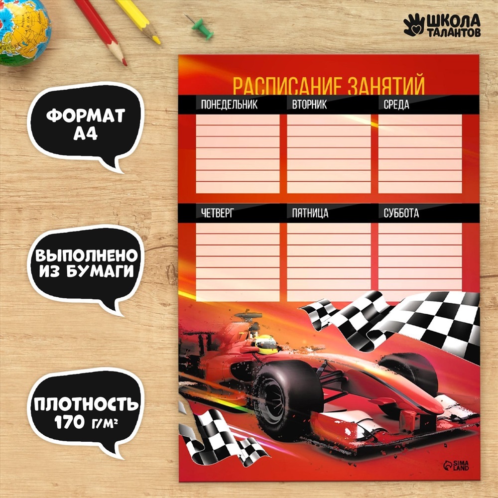 Расписание уроков «Гонки» А4 . Чем ярче окружение ребенка, тем активнее он развивается, работают его воображение и фантазия, а также плавно и гармонично проходит процесс обучения в детском саду и школе. Комментарии к товару