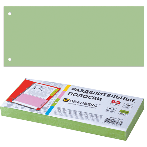 Разделитель картон. "Полосы зеленые" 240*105 - 100шт. Brauberg, 223971 Подробнее
