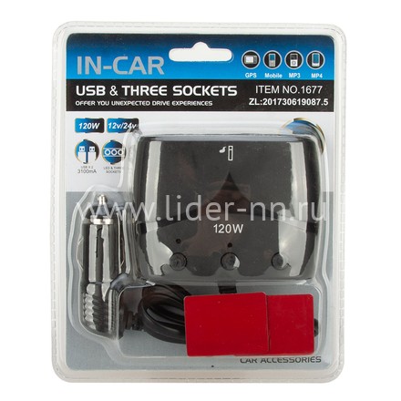 Разветвитель в авто Olesson (120W) 1677/A2157 на 3 устр-ва со шнуром