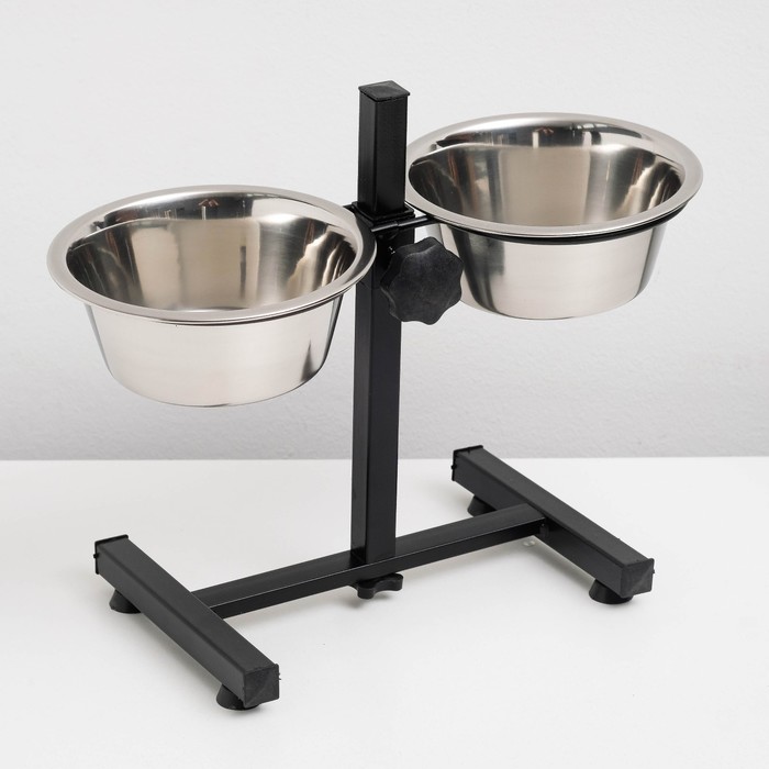 Подарите вашему пушистому другу не только комфорт, но и стильный аксессуар для кормления — регулируемую подставку с двумя мисками. Эта элегантная конструкция сочетает в себе удобство и практичность, обеспечивая вашим питомцам идеальные условия для еды и питья.
