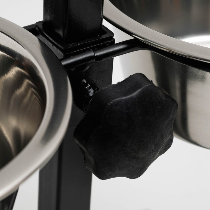 * Регулируемая высота: Вы можете настроить высоту подставки в соответствии с ростом вашего питомца, что помогает улучшить его осанку и предотвратить проблемы с пищеварением.