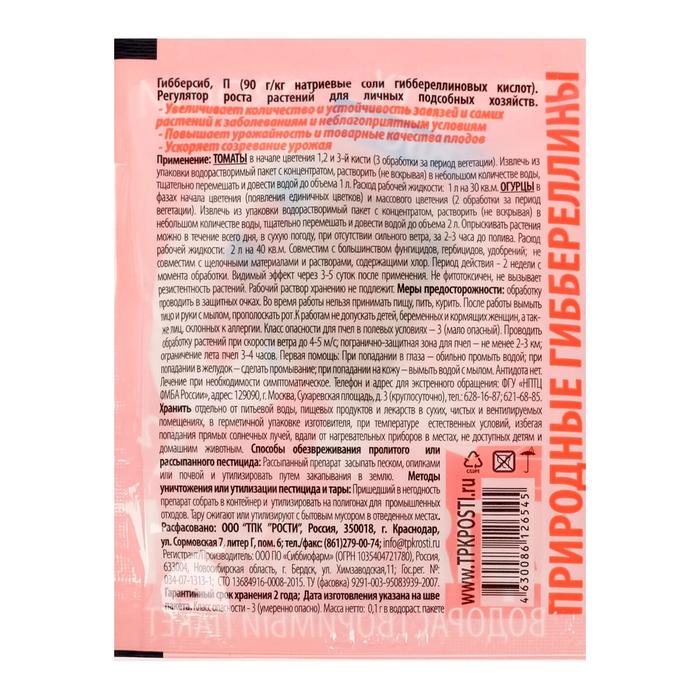 ГИББЕРСИБ - природный фитогормон, стимулятор роста. Суперконцентрат. Ускоряет созревание урожая, повышает устойчивость к заболеваниям и неблагоприятным погодным условиям. Безопасен для человека, теплокровных животных, птиц, рыб, пчел и для окружающей среды.