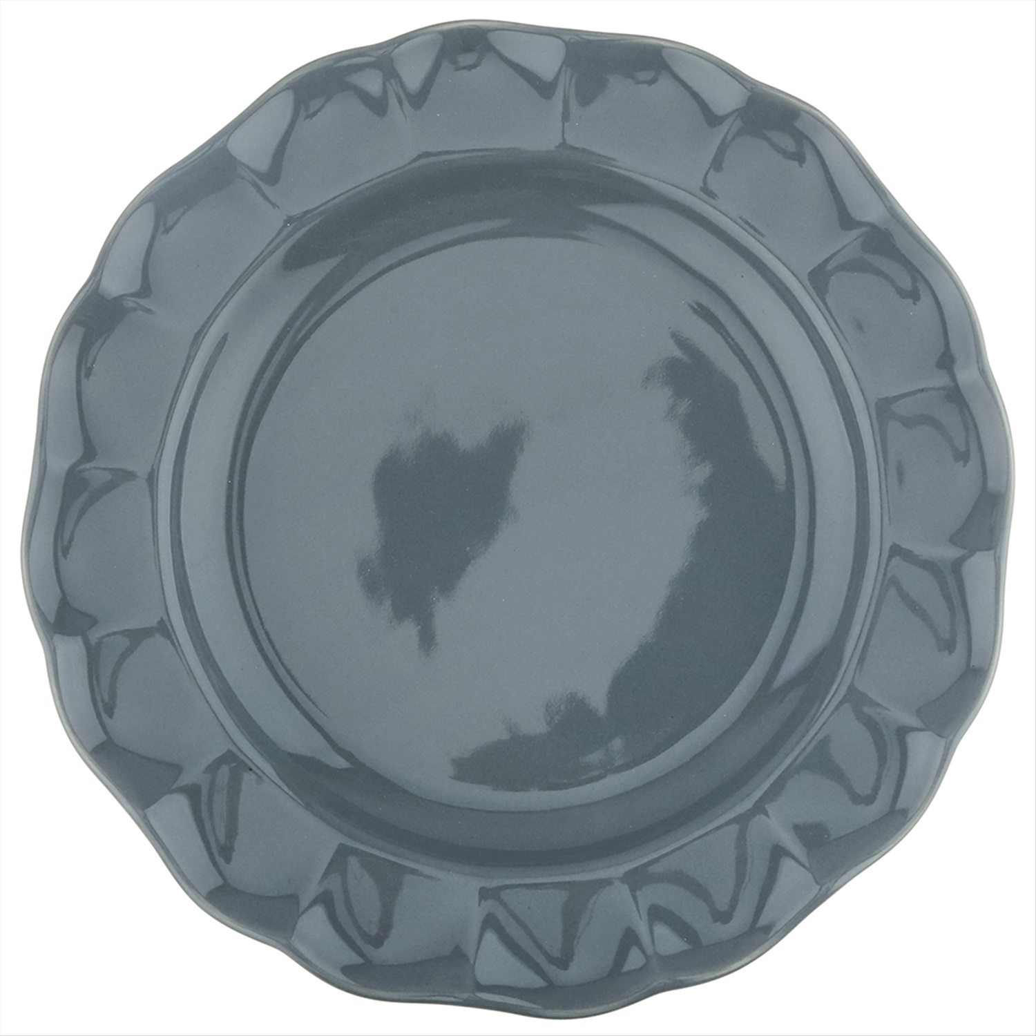 "Рейн" Тарелка мелкая фарфоровая д225мм h27мм, цветной, волнистый край, цвет - серый, в коробке (Китай)