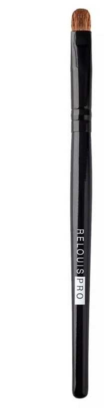 Плоская кисть позволяет детально проработать тенями поверхность подвижного века, выделить компактным хайлайтером Relouis PRO подбровное пространство и создать блик во внутреннем уголке глаза.