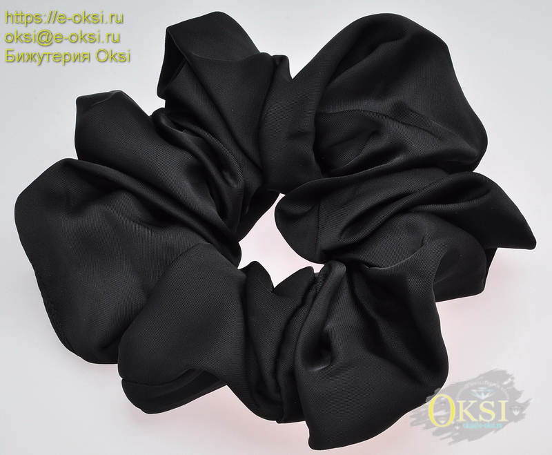 Крупная, стильная резинка для волос из плотного шёлка чёрного цвета. Легко оборачивается в два раза не травмируя и не повреждая волосы. Диаметр резинки 11 см, ширина полосы 4 см.
