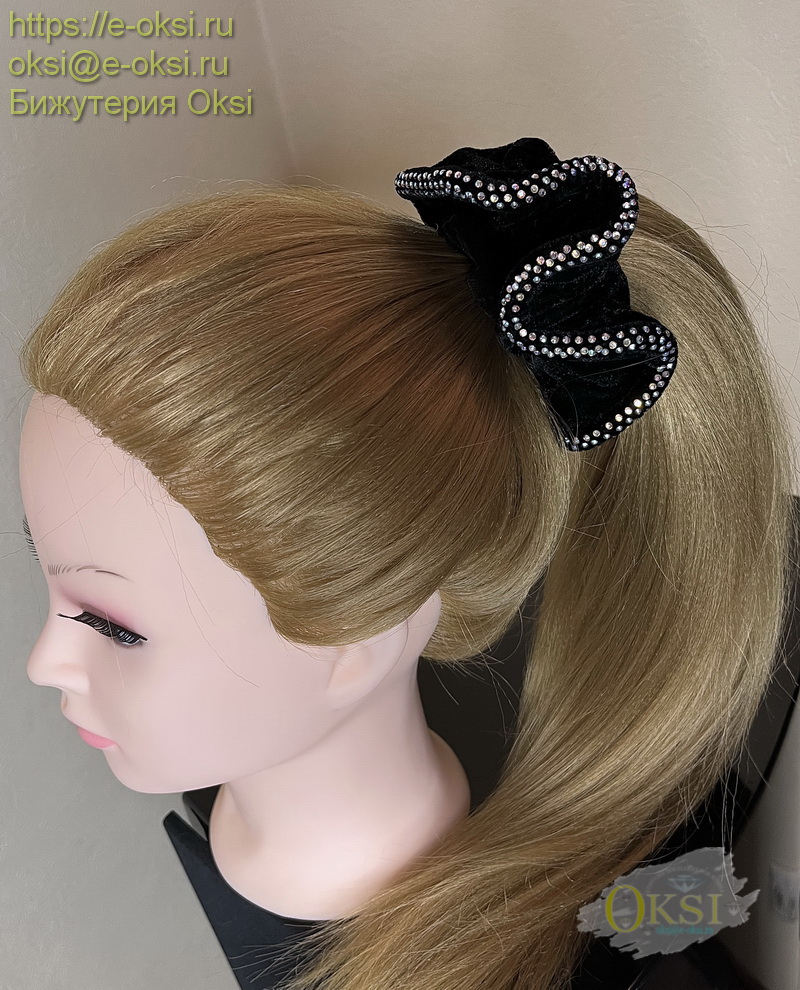 Качественная, бархатная резинка украшена сверкающими кристаллами . Легко и просто оборачивается в два раза, создавая дополнительный объём причёске. Диаметр 12 см.