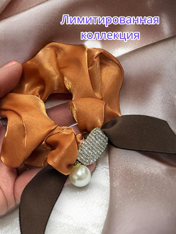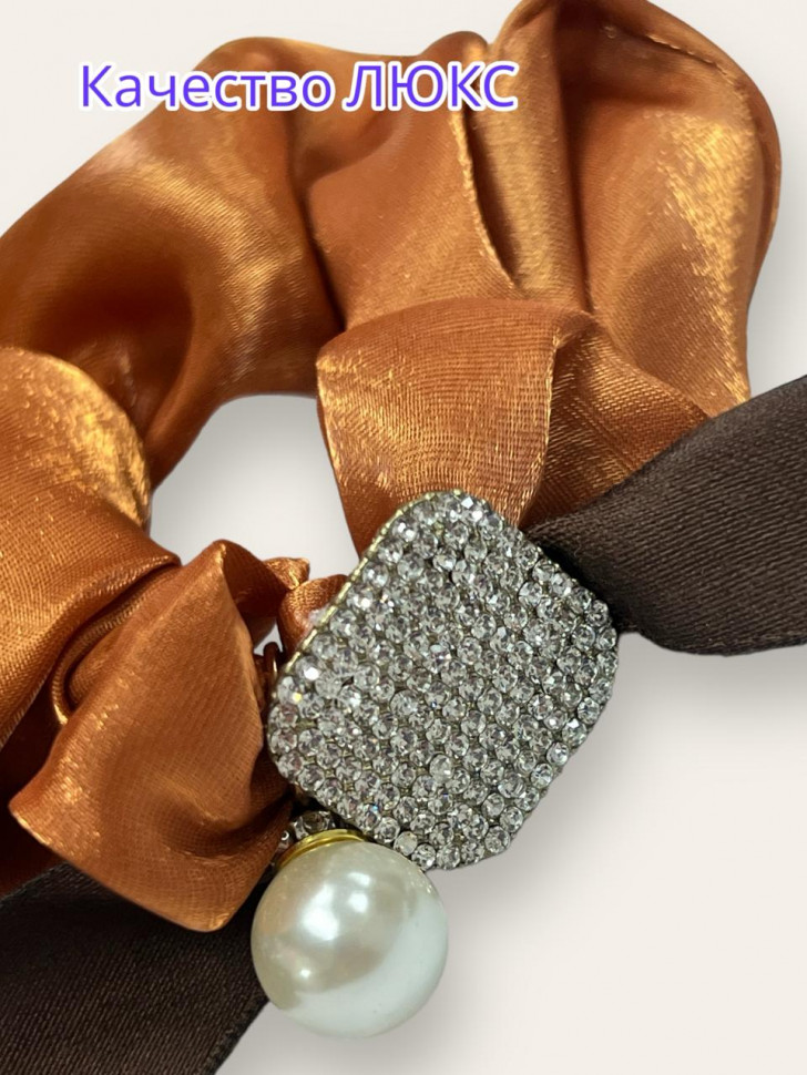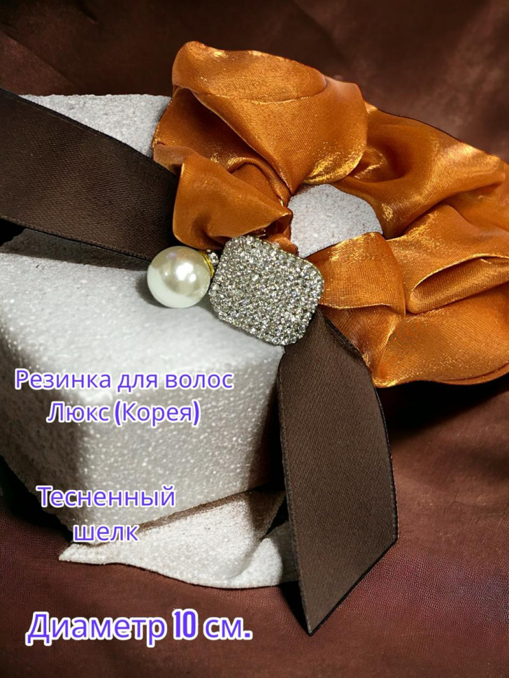 Резинка для волос объемная из тесненного перламутрового шёлка с украшение - это стильный аксессуар, украсит вечернюю прическу, а также дополнит повседневную.