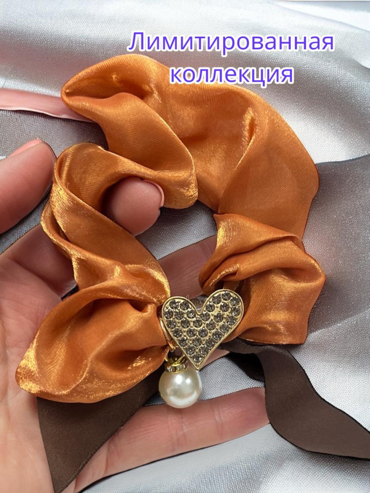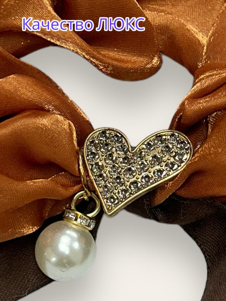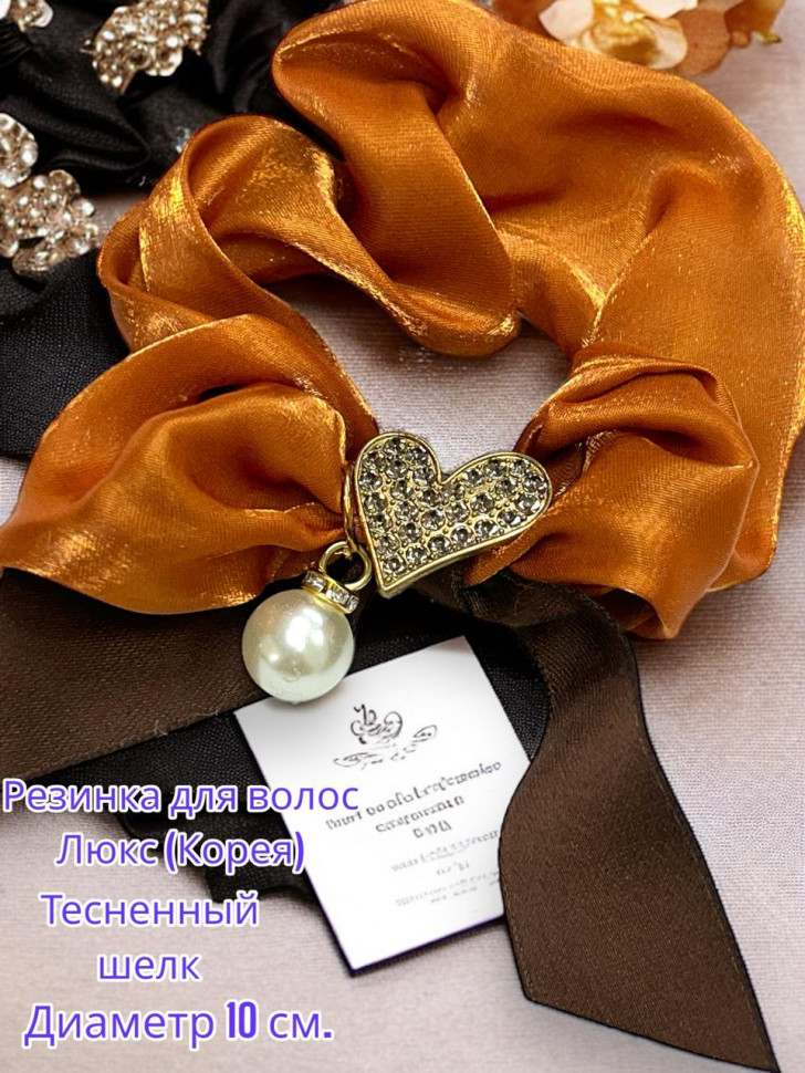 Резинка для волос объемная из тесненного перламутрового шёлка с украшение - это стильный аксессуар, украсит вечернюю прическу, а также дополнит повседневную.