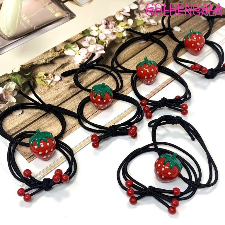 Резинка для волос "Клубничка". Диаметр 6 см. Цена за 10 шт Р 5.