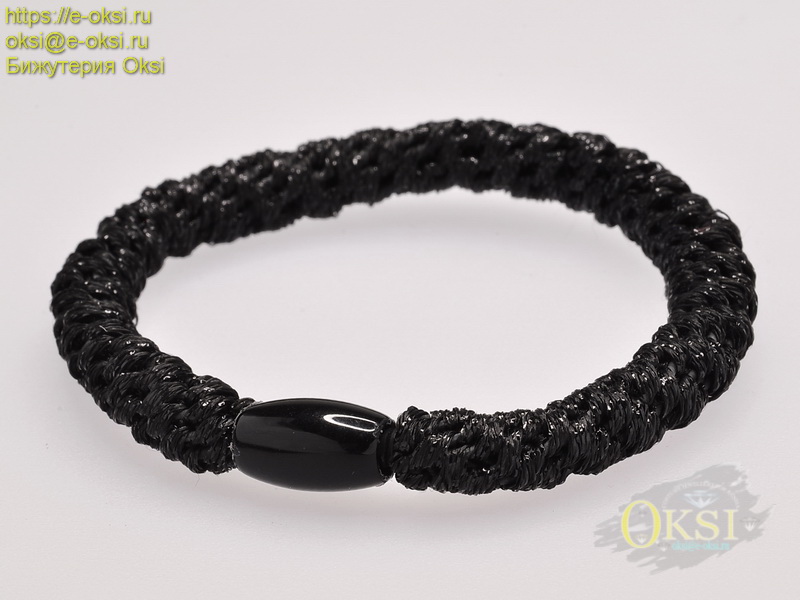 Стильная блестящая резинка для волос чёрного цвета, диаметром 6 см.