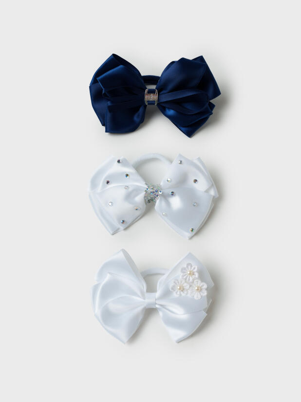 Набор из трех бантов на резинке. Каждый бант выполнен вручную. Мягкая, но прочная резинка не давит и бережно фиксирует волосы, подойдёт для любой длины и густоты. Банты подходят к школьной форме и нарядным платьям. Ширина бантов 12см