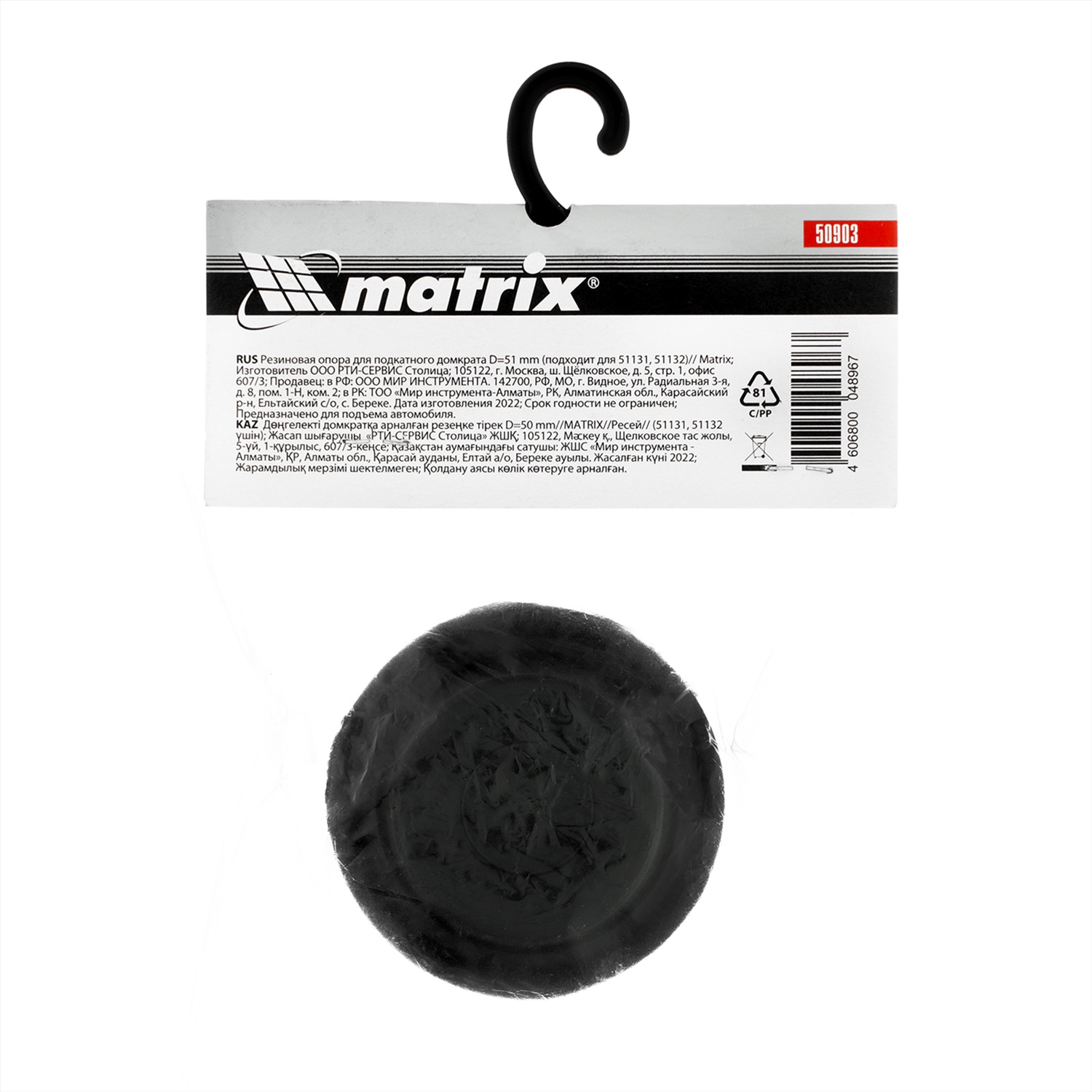 Резиновая опора Matrix 50923, D=51 mm, подходит для подкатных домкратов 51131, 51132. Она защищает днище автомобиля и верхнюю опору домкрата от деформации при ремонте транспортного средства. Опора пригодится частным и профессиональным мастерам. Преимущества