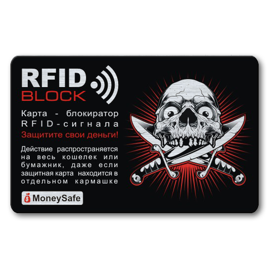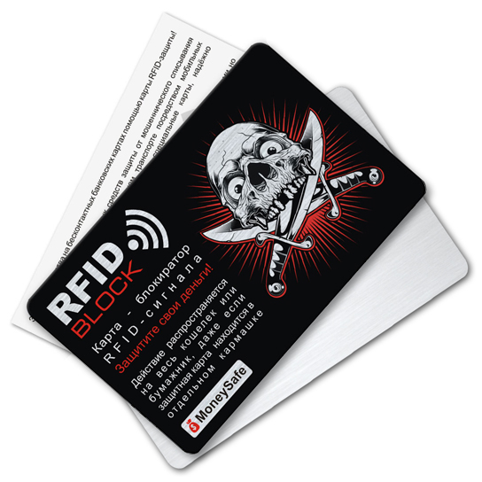Карта из тонкого металла надёжно защитит средства на бесконтактных банковских картах. Действие распространяется на весь кошелек или бумажник, даже если защитная карта находится в отдельном кармашке.