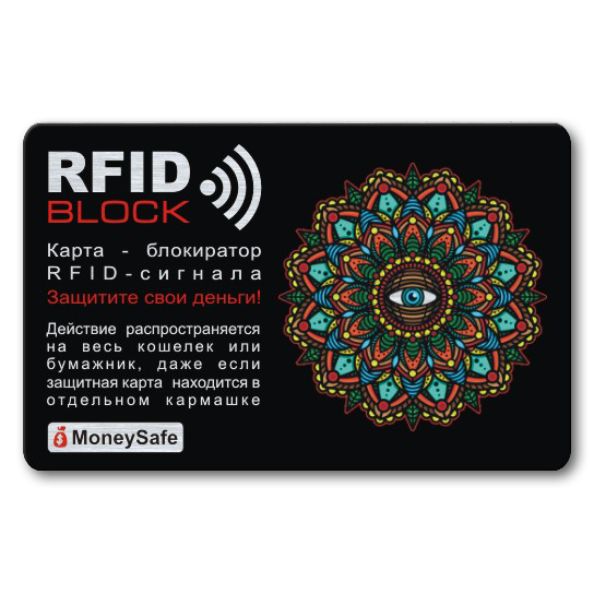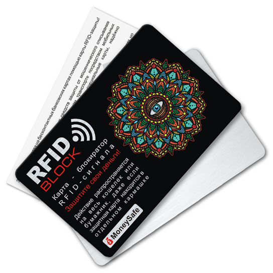 Карта из тонкого металла надёжно защитит средства на бесконтактных банковских картах. Действие распространяется на весь кошелек или бумажник, даже если защитная карта находится в отдельном кармашке.