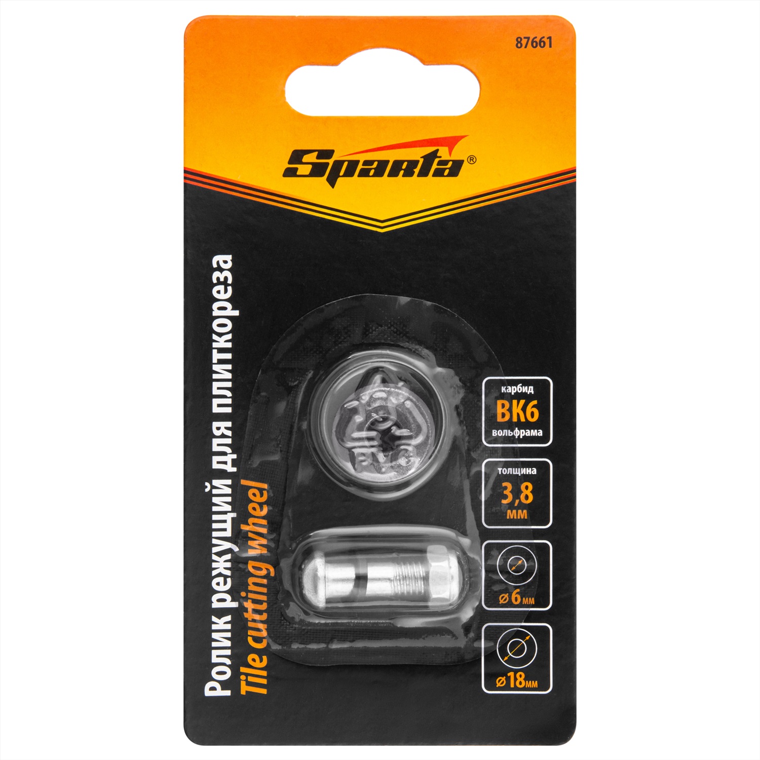 Режущий ролик Sparta 87661 размером 18,0 х 6,0 х 3,8 мм — рабочий элемент для плиткорезов Sparta 876355, 876365, 876375. Позволяет быстро и ровно разрезать керамическую плитку. Используется для проведения отделочных работ.