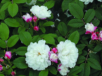 Кустики "Луиза Багнет" имеют компактную форму и среднюю высоту (до 100 см), что делает их идеальным выбором для посадки в садах всех размеров. Они же обладают пышными махровыми цветами, которые распускаются в крупные бутоны и радуют глаз своим утонченным видом. Розы окрашены в белый и нежный розовый цвет с легким оттенком фиолетового, что добавляет им особой изюминки.