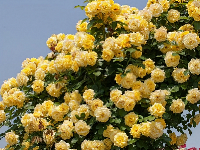 Роза плетистая Римоза куст высотой 190-210 см., шириной 200 см. Цветок лимонного цвета, диаметром 7-9 см. Аромат фруктовый. Цвести начинает с июня по октябрь. Лучшее украшение для вашего сада, изгороди или балкона. Морозостойкость 6 (от -23° до -18°).