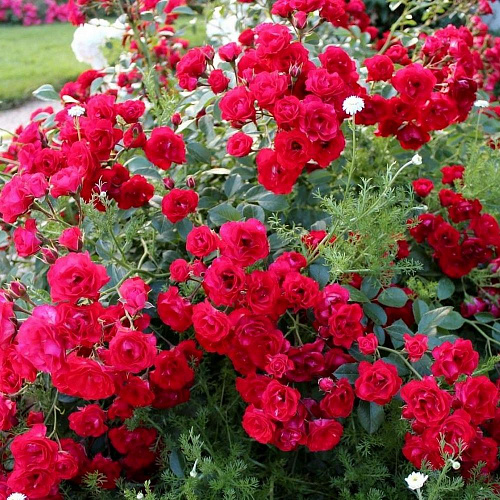 Роза Скарлет Мейяндекор – достойный сорт, который благодаря насыщенной ярко-красной окраске, на протяжении почти 20 лет пользуется огромной популярностью среди цветоводов. Один из самых выносливых и адаптивных сортов. Цветочки ярко-алого цвета, или как их характеризуют, насыщенно красные. Цветы не осыпаются, засыхая на стеблях или образовывая ярко-красные, декоративные плоды, что придает кусту легкий шарм. Цветение обильное, волнообразное. Диаметр цветка около 3-4 см. В каждом цветоносе образуется от 10 до 15 цветов. Аромат легко розы Scarlet Meillandecor осязаем и приятен.Высота розы Скарлет Мейяндекор около 125 см. несмотря на всю свою красоту, отличаются высокой неприхотливостью и способностью сохранять декоративность до самой осени. Стелющиеся по земле кусты буквально усыпаны множеством мелких цветков. Разрастаясь, пышные кустики почвопокровных роз формируют настоящий цветочный ковер. Цветение подчас настолько обильное, что даже листьев становится не видно. Всё лето и теплую осень этот сорт будет украшением Вашего участка.
