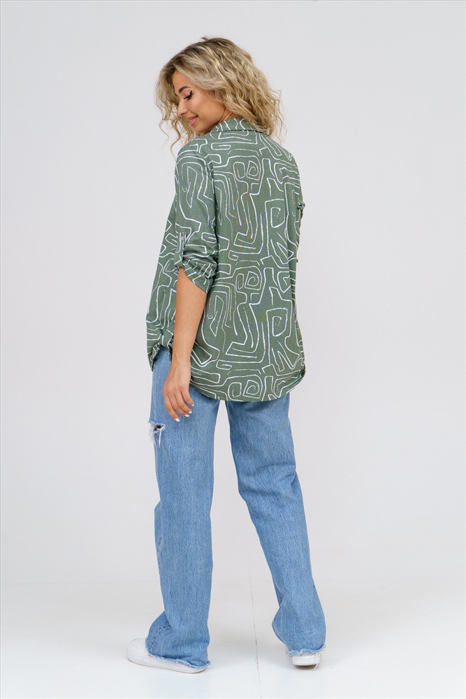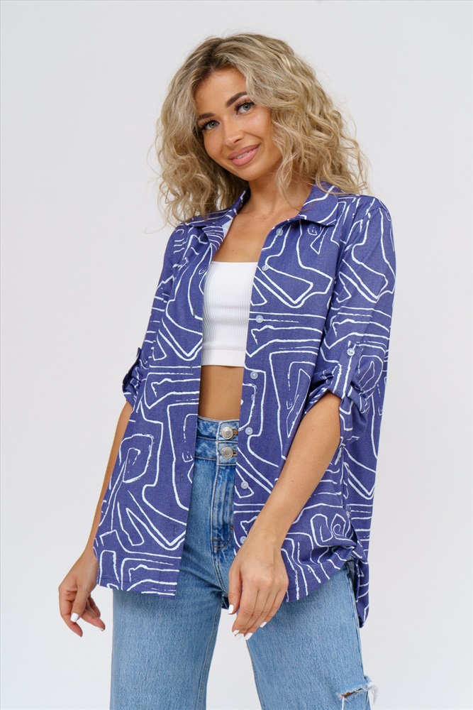 Состав: 100% хлопок Модель: Рубашка 36768 Тип товара: рубашка Материал: кулирка | кулирка Бренд: Натали Суслова Карман: без карманов Отделка: с патами Рисунок: абстракция | геометрия | узоры Рукав: рукав 3/4 Сезонность: лето | осень | весна | зима Силуэт: прямой | свободный Стиль: повседневный Воротник: рубашечный воротник Застежка: пуговицы Женская стильная туника - рубашка выполнена из 100% хлопчатобумажного полотна. Новый дизайн и отличное качество делает изделие модным, легким и приятным на ощупь, не сковывает движения, поэтому отлично подойдет как для школы, дома и работы, так и для повседневной носки. Модель дополняет рубашечный воротник, паты и планка с расстёгивающимися пуговицами, делая её более комфортной. Женская свободная рубашка не сковывает движения, поэтому отлично подойдет будущим мамам, беременным женщинам и кормящим. Расстёгивающаяся планка сделает кормление малыша удобным и комфортным, а за счет качественного хлопкового трикотажа еще и безопасным и экологичным. Мы специально разработали рубашку для женщин большого размера. Большие размеры любят и подростки, которые предпочитают вещи оверсайз (oversize). Рубашка женская - это базовая вещь в гардеробе девушки или женщины, является идеальным вариантом для офиса, работы, школы и путешествий. Удлиненную рубашку можно носить дома и в качестве повседневной одежды. Таблица размеров и веса
