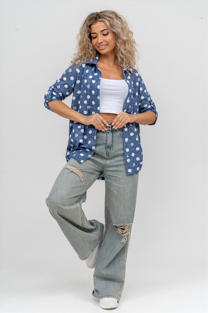 Состав: 100% хлопок Модель: Рубашка 36824 Тип товара: рубашка Материал: кулирка | кулирка Бренд: Натали Суслова Карман: без карманов Отделка: с патами Рисунок: горошек Рукав: рукав 3/4 Сезонность: лето | осень | весна | зима Силуэт: прямой | свободный Стиль: повседневный Воротник: рубашечный воротник Застежка: пуговицы Женская стильная туника - рубашка выполнена из 100% хлопчатобумажного полотна. Новый дизайн и отличное качество делает изделие модным, легким и приятным на ощупь, не сковывает движения, поэтому отлично подойдет как для школы, дома и работы, так и для повседневной носки. Модель дополняет рубашечный воротник, паты и планка с расстёгивающимися пуговицами, делая её более комфортной. Женская свободная рубашка не сковывает движения, поэтому отлично подойдет будущим мамам, беременным женщинам и кормящим. Расстёгивающаяся планка сделает кормление малыша удобным и комфортным, а за счет качественного хлопкового трикотажа еще и безопасным и экологичным. Мы специально разработали рубашку для женщин большого размера. Большие размеры любят и подростки, которые предпочитают вещи оверсайз (oversize). Рубашка женская - это базовая вещь в гардеробе девушки или женщины, является идеальным вариантом для офиса, работы, школы и путешествий. Удлиненную рубашку можно носить дома и в качестве повседневной одежды. Таблица размеров и веса