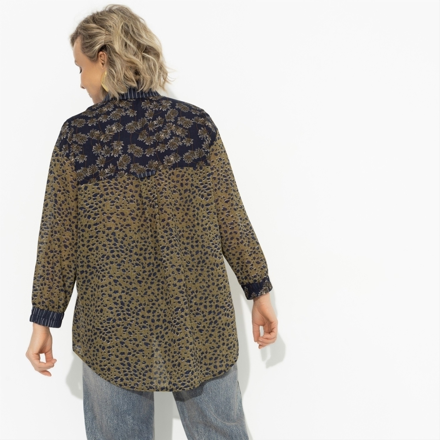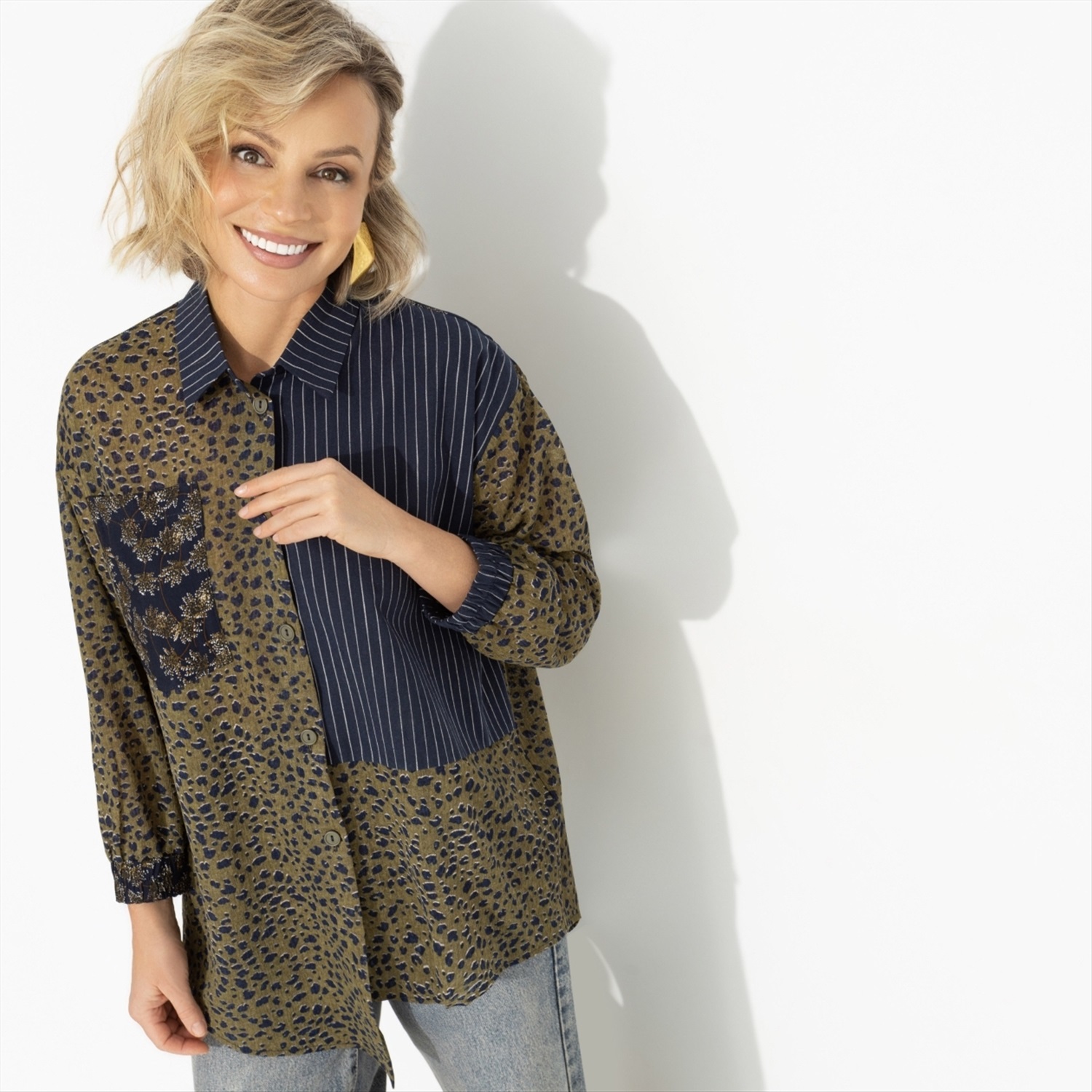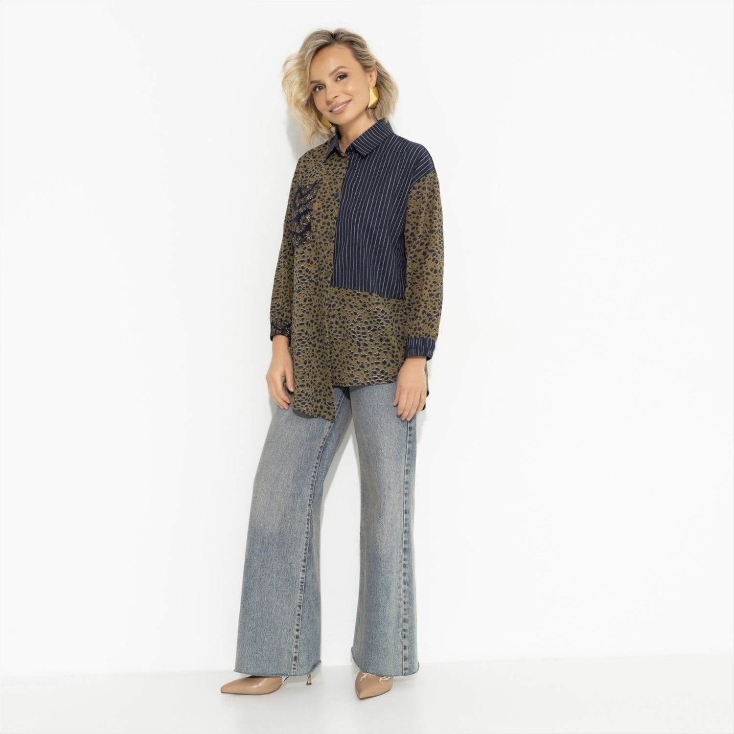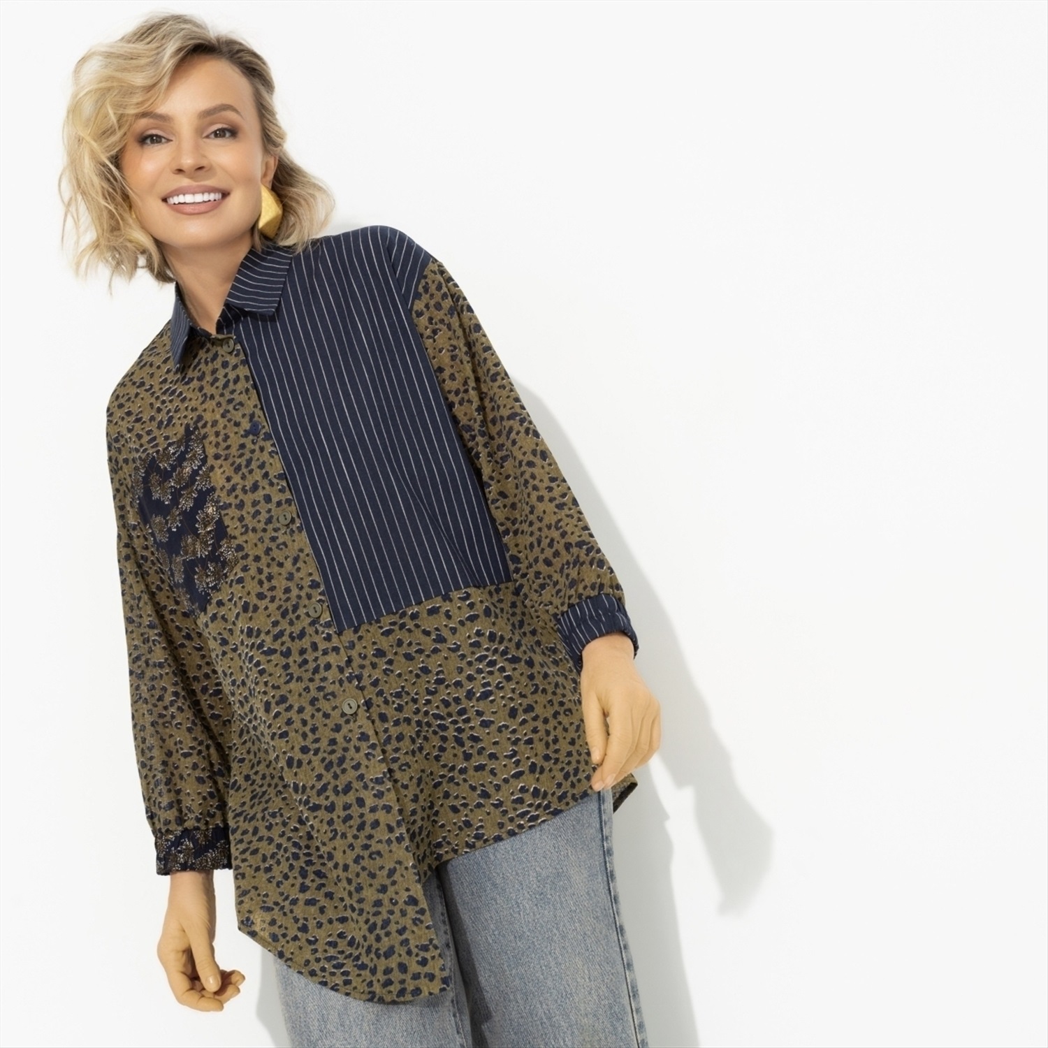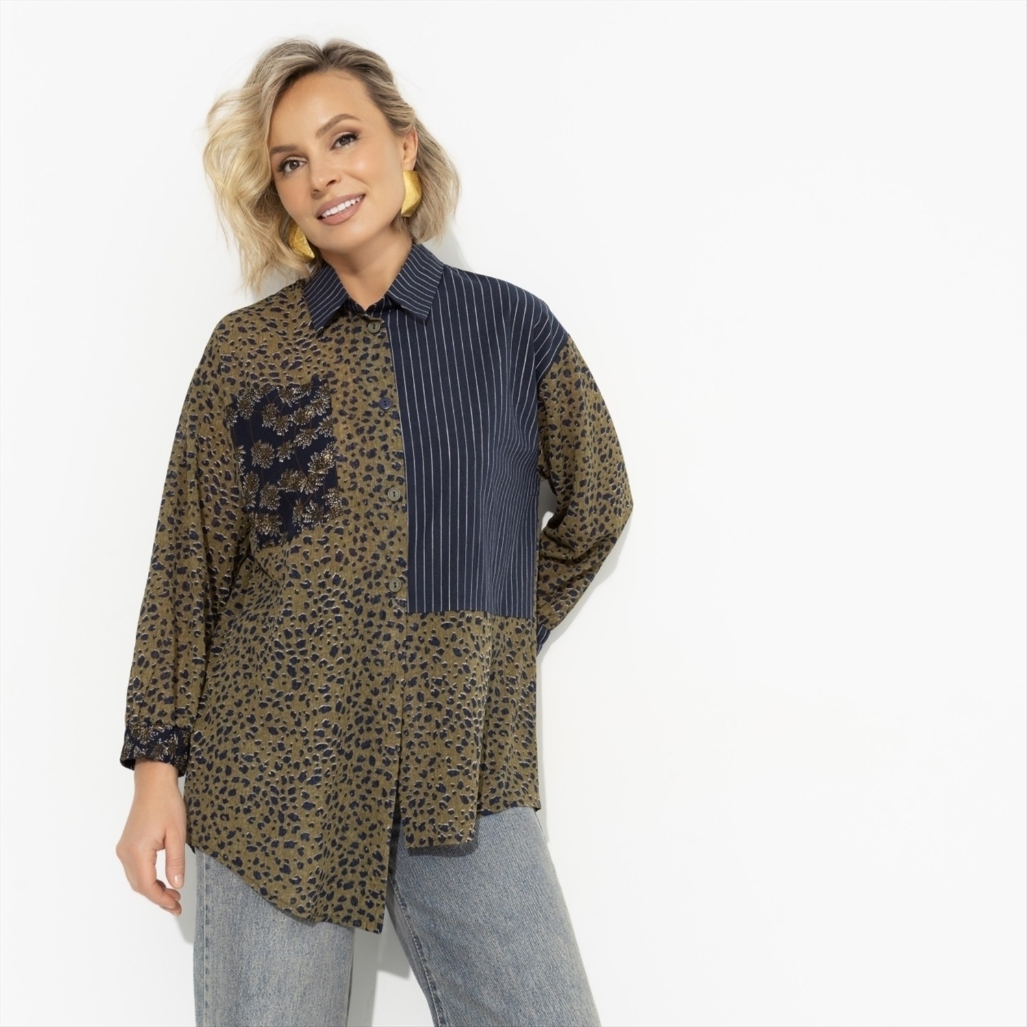 Ты обожаешь рисовать. Подбор цвета всегда давался тебе легко. Так в тебе появилась страсть к нетривиальным сочетаниям оттенков. Рубашка CHARUTTI отлично вписалась в гардероб творческой личности. Комбинированная рубашка свободного ассиметричного кроя. Есть карман на передней части изделия. Чуть укороченный рукав оформлен широкой скрытой резинкой. Изделие застегивается на пуговицы.