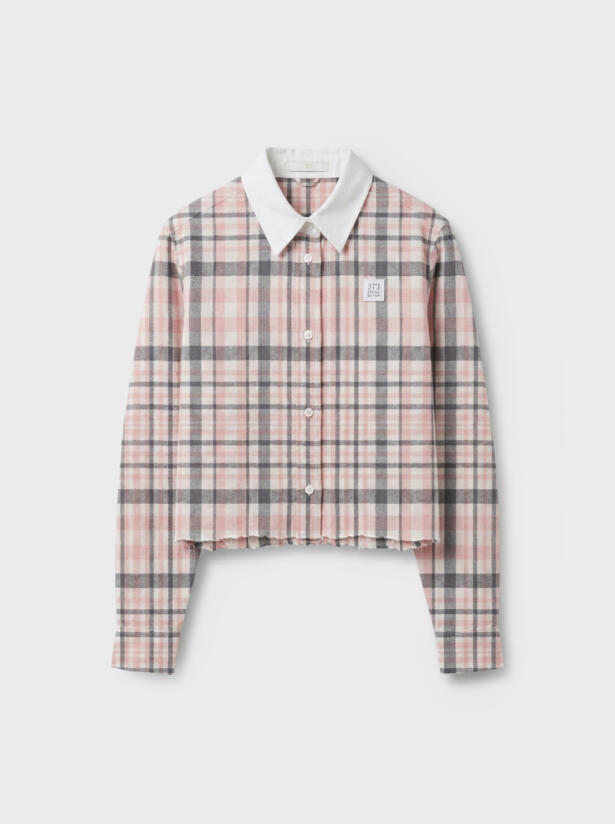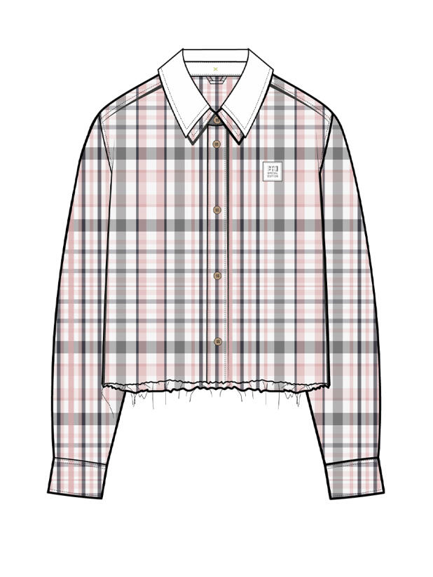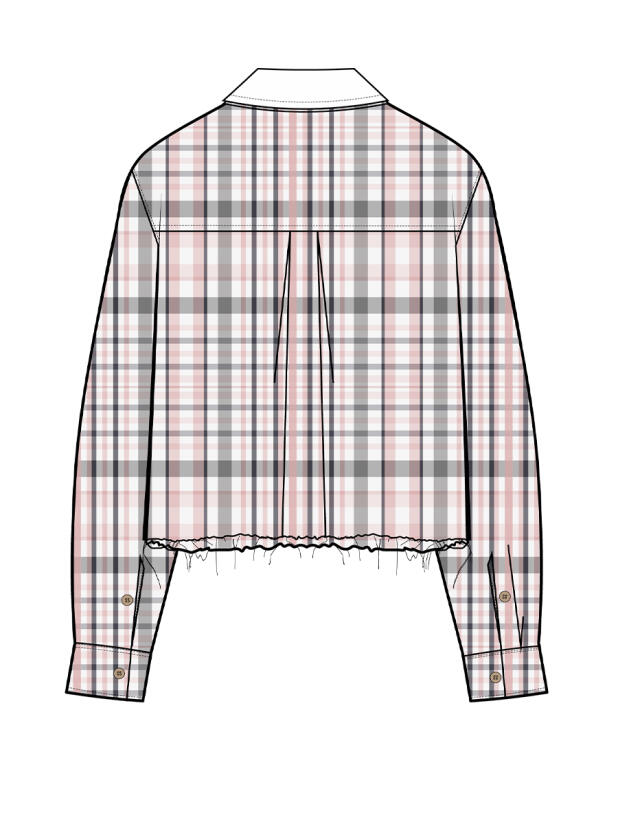 Рубашка в клетку для девочки подростка. Выполнена из мягкой, хлопковой ткани поплин. Отложной воротник. Спереди — классическая застёжка на пуговицы. Небольшой логотип на груди. На спинке — декоративная кокетка и складка. Рукава длинные с манжетами на пуговицах. Необработанный край.
