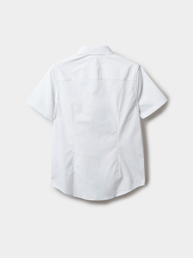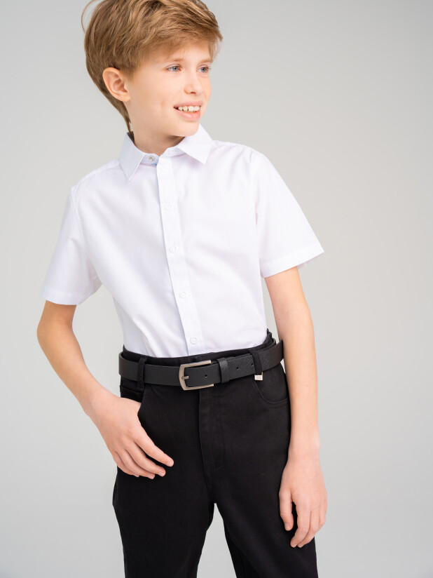Белая школьная приталенная рубашка для мальчика-подростка от PlayToday — классика, которая дарит стиль и уверенность каждый день.
