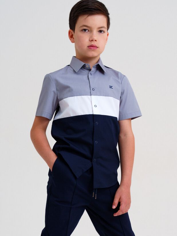 Совет по стилю: Серый, темно-синий и белый цвета делают её универсальной — сочетайте эту модную рубашку для мальчика с коротким рукавом с тёмными брюками и лоферами для торжественного случая, или добавьте джемпер и кеды — и получится стильный школьный образ от PlayToday на каждый день. Модель также отлично подойдёт для выпускного или другого важного мероприятия.