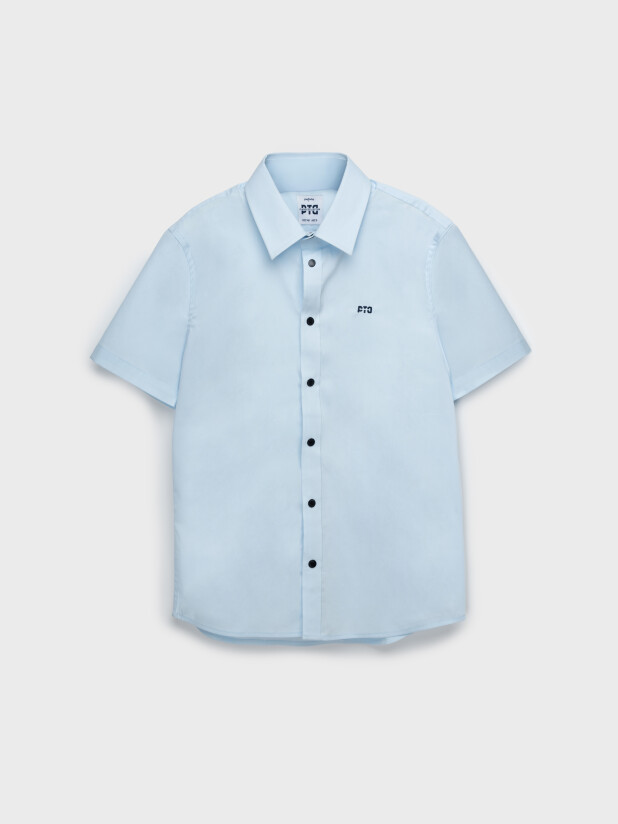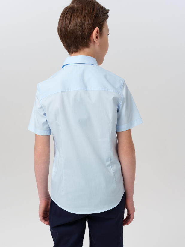 Голубая школьная приталенная рубашка для мальчика-подростка от PlayToday — классика, которая дарит стиль и уверенность каждый день.