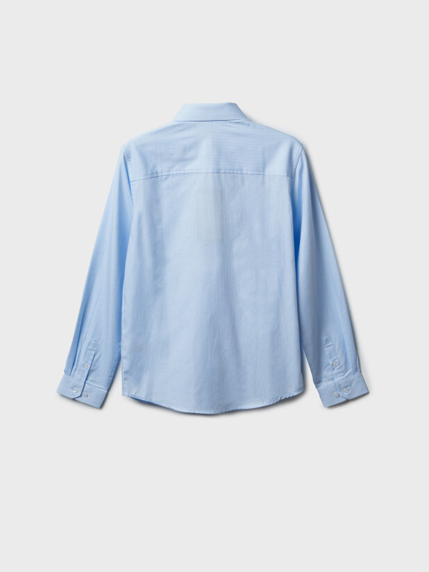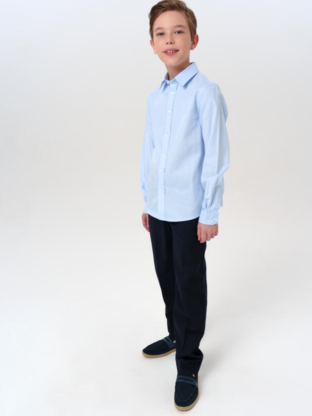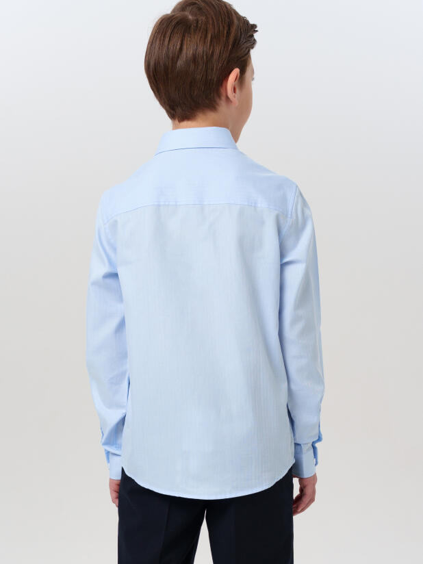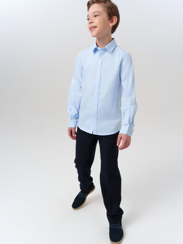 Голубая школьная рубашка для мальчика от бренда PlayToday — идеальный выбор на каждый учебный день и торжественный случай.