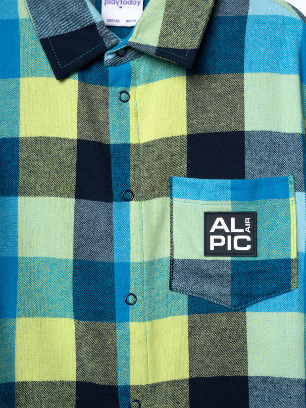 Стильная фланелевая клетчатая рубашка для мальчика подростка от PlayToday — комфорт, практичность и современный дизайн для школы и прогулок каждый день.