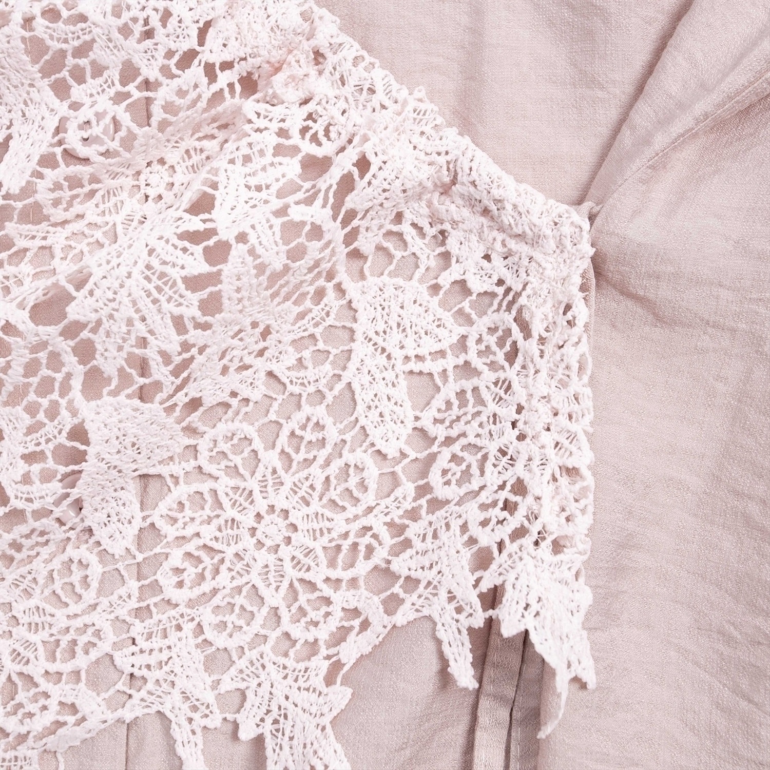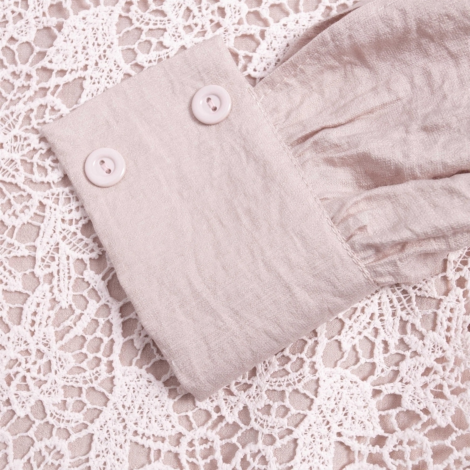 ТН ВЭД: 6106200000; Состав: Блузочная ткань «фаби», кружево (50% вискоза, 32% хлопок, 18% нейлон); Плотность ткани: Средняя; Тип ткани: Трикотаж; Вид застежки: Пуговица/-ы; Декоративные элементы: Драпировка; Карманы: Нет; Основной цвет ткани: Розовый; Отрезная талия: Нет; Подклад: Нет; Резинка по талии: Нет; Рисунок/раппорт: Нет, все изделия идентичны; Сезон: Круглогодичный; Силуэт: Свободный