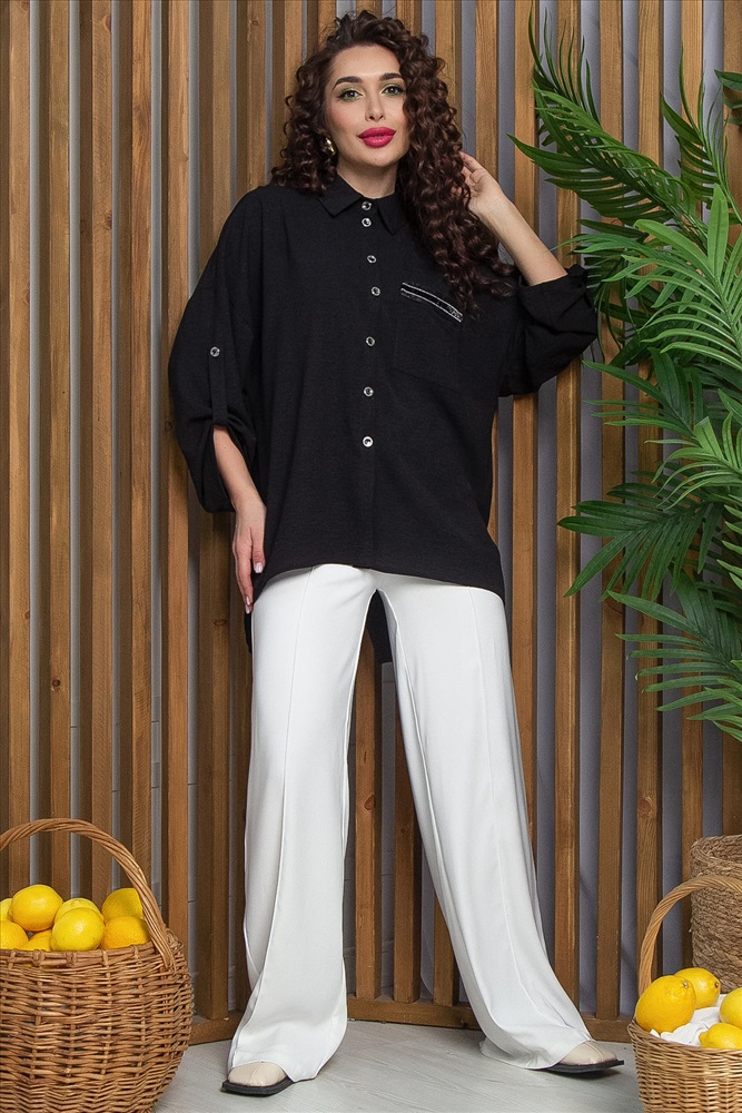 Рубашка свободного силуэта, которая обеспечит вам удобство и свободу движений! Особенность этой модели — выразительная спинка, которая скроена на запах. Это придаст вашему образу неповторимость и изысканность. Рубашка отлично сочетается с шортами, короткими топами, легинсами, джинсами, брюками и юбками, что делает её универсальным элементом вашего гардероба. Рукав собирается на пату.