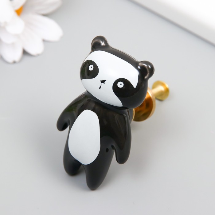 Мебельная ручка - кнопка, керамика, металл «Панда», 6.3×3.5 см