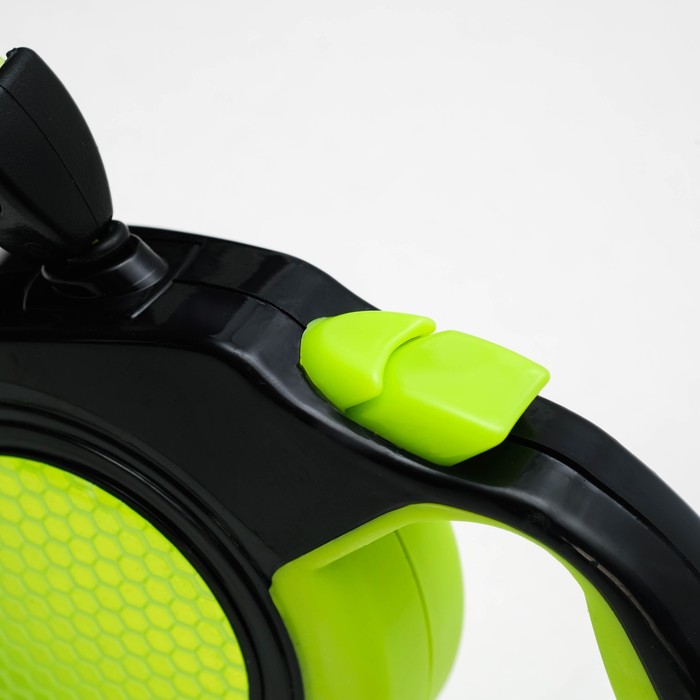 Рулетка обладает прорезиненной ручкой, которая позволяет комфортно и надежно держать руку во время прогулки.