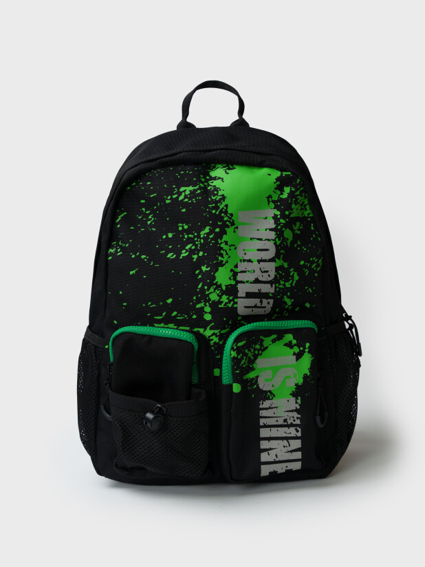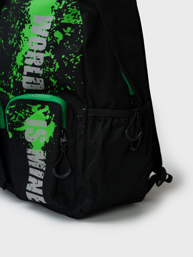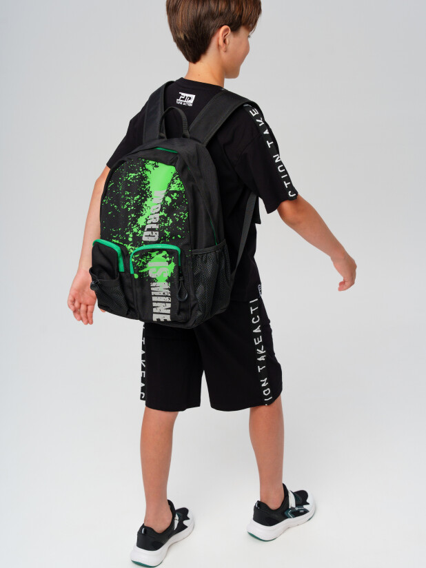 Легкий рюкзак с уплотненной вентилируемой спинкой для мальчика подростка. Модель выполнена из качественной и плотной водонепроницаемой ткани оксфорд. Молния имеет защитный клапан от попадания воды. Рюкзак для школы имеет одно отделение с различными карманами внутри для систематизации школьных принадлежностей. Спереди два кармана на молнии и один карман из сетки на утяжке. По бокам также есть карманы. Широкие мягкие вентилируемые лямки регулируются по высоте. У рюкзака есть ручка для ношения в руке и для того, чтобы его можно было вешать на вешалку. Ранец имеет светоотражающие детали на лямках и светоотражающий принт спереди. Рюкзак в школу можно дополнить мешком для обуви и пеналом в том же дизайне. Размер рюкзака: 30*40*15 см. Вес рюкзака: 500 гр