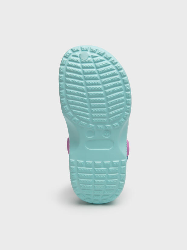 Сабо детские для девочки. Сабо из облегченного и прочного ЭВА. Материал хорошо моется. Объемный рисунок на правой и левой полупарах рассказывают нам целую историю подводного мира. Форма модели учитывает эргономику стопы. Модель имеет цветной перекидной ремешок для лучшей фиксации обуви на ноге. Благодаря вентиляционным отверстиям сабо проветриваются, ноги ребенка дышат и не потеют.