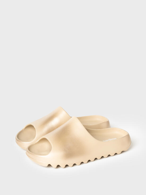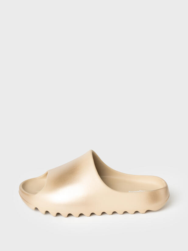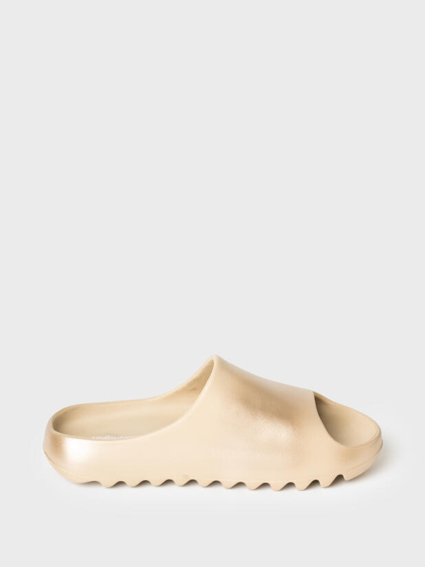 Модные шлепанцы для девочки подростка. Модель имеет перламутрово-золотой градиент окрашивания. Сабо для пляжа и бассейна из облегченного и прочного ЭВА. Материал хорошо моется. Форма модели учитывает эргономику стопы. *Размер на подошве может отличаться от этикетки. Сверяйтесь с информацией на этикетке.