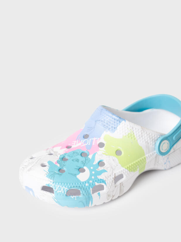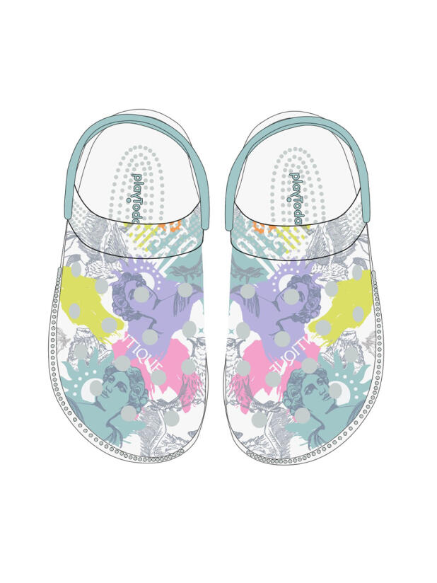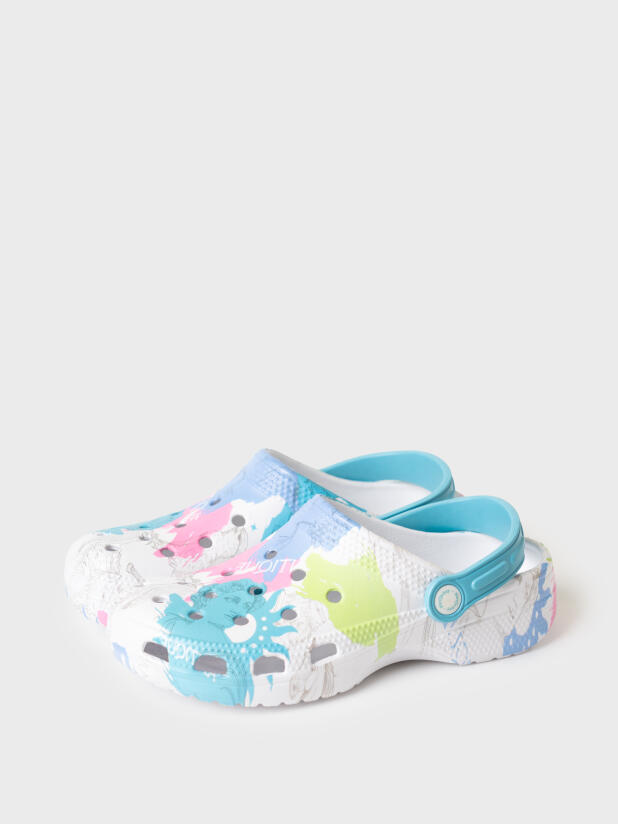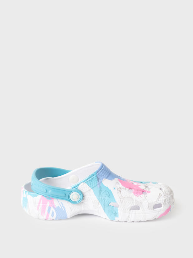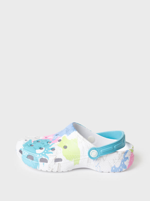 Сабо для девочки. Сабо из облегченного и прочного ЭВА с фирменным принтом. Материал хорошо моется. Форма модели учитывает эргономику стопы. Модель имеет перекидной ремешок для лучшей фиксации обуви на ноге. *Размер на подошве может отличаться от этикетки. Сверяйтесь с информацией на этикетке.
