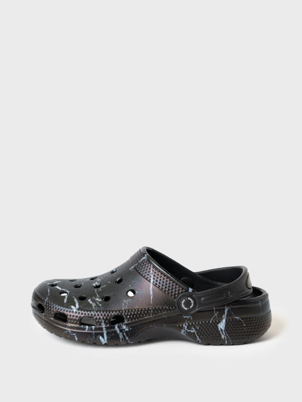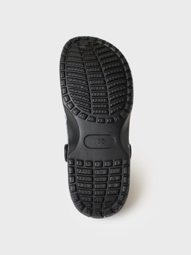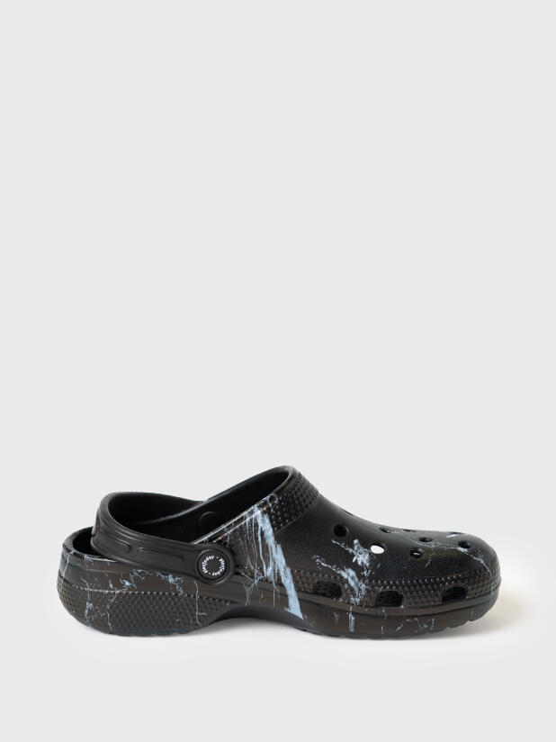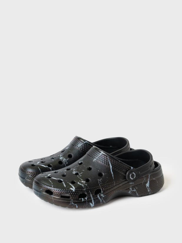Сабо для девочки. Сабо из облегченного и прочного ЭВА с фирменным мраморным принтом. Материал хорошо моется. Форма модели учитывает эргономику стопы. Модель имеет перекидной ремешок для лучшей фиксации обуви на ноге.